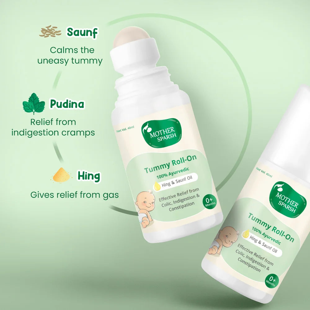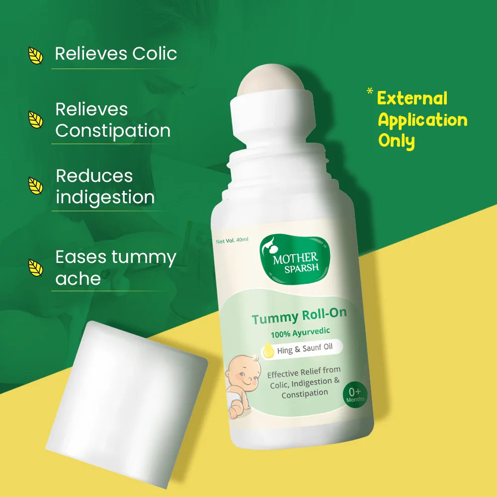 Introducing our Tummy Roll-On for Baby, made with age-old Indian traditional ingredients. It's 100% natural and safe for newborns. This Baby Tummy Roll-On provides quick relief from colic, indigestion, tummy aches, and other tummy troubles. For external use only, it’s an easy-to-use and travel-friendly pack—just rub the roll-on around your baby’s navel area and see the results in no time. Trusted by countless mothers, it’s the best tummy roll-on for babies, ensuring comfort and peace for your little one. Make it your go-to tummy roll-on for colic relief and see the difference.