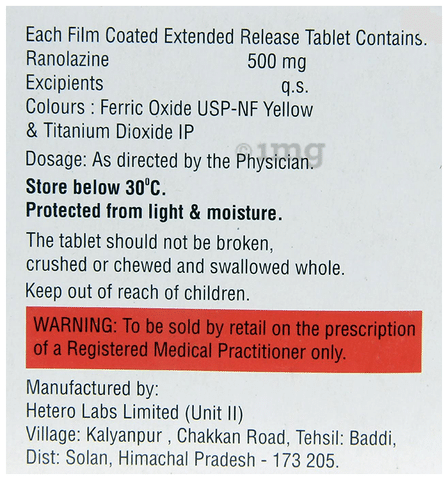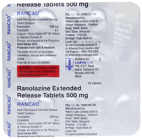 Rancad Tablet ER is used for the management of angina (heart-related chest pain). It helps to prevent new attacks of angina but does not stop an acute attack, once started. It relieves chest pain by making the heart work more efficiently.